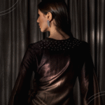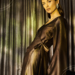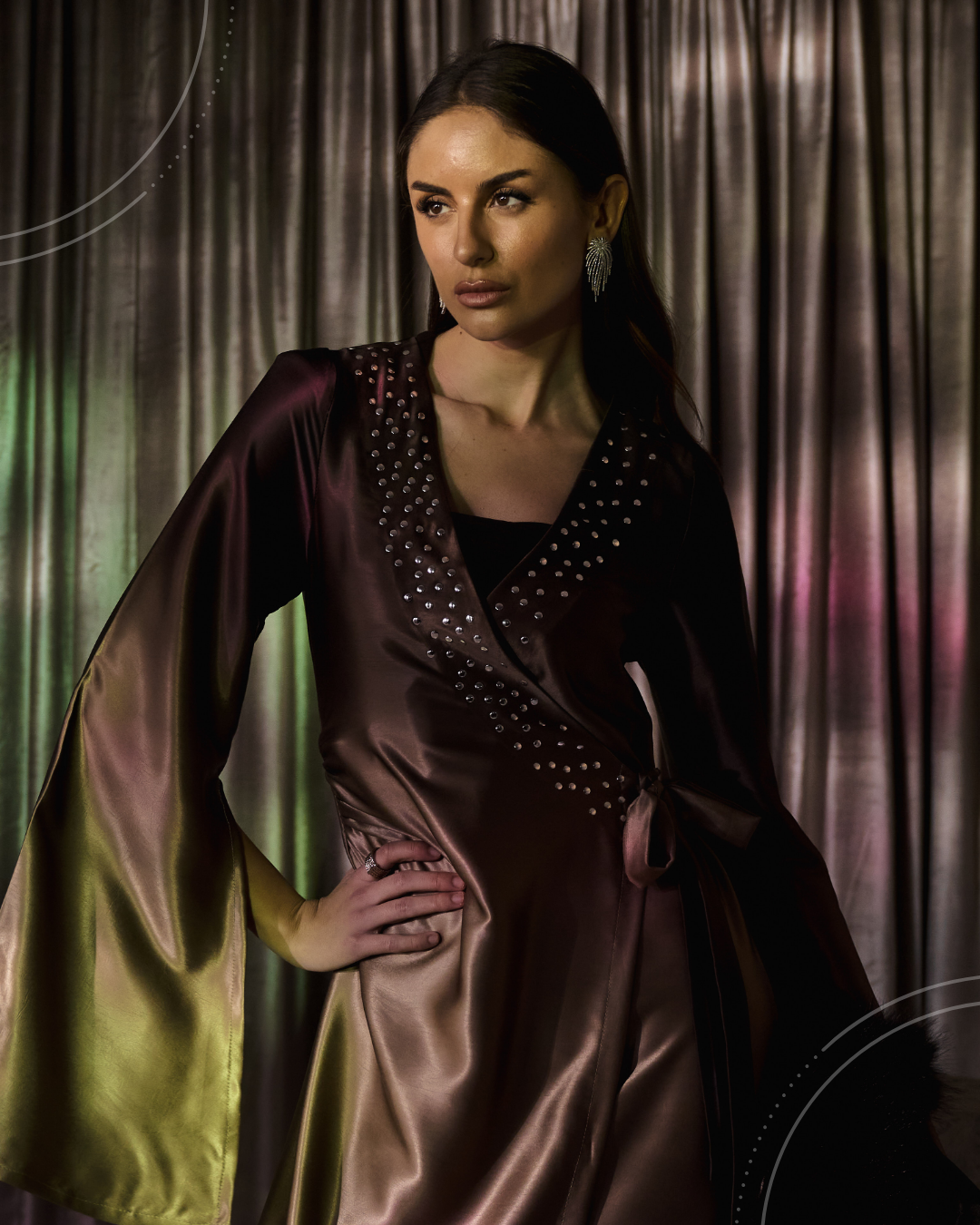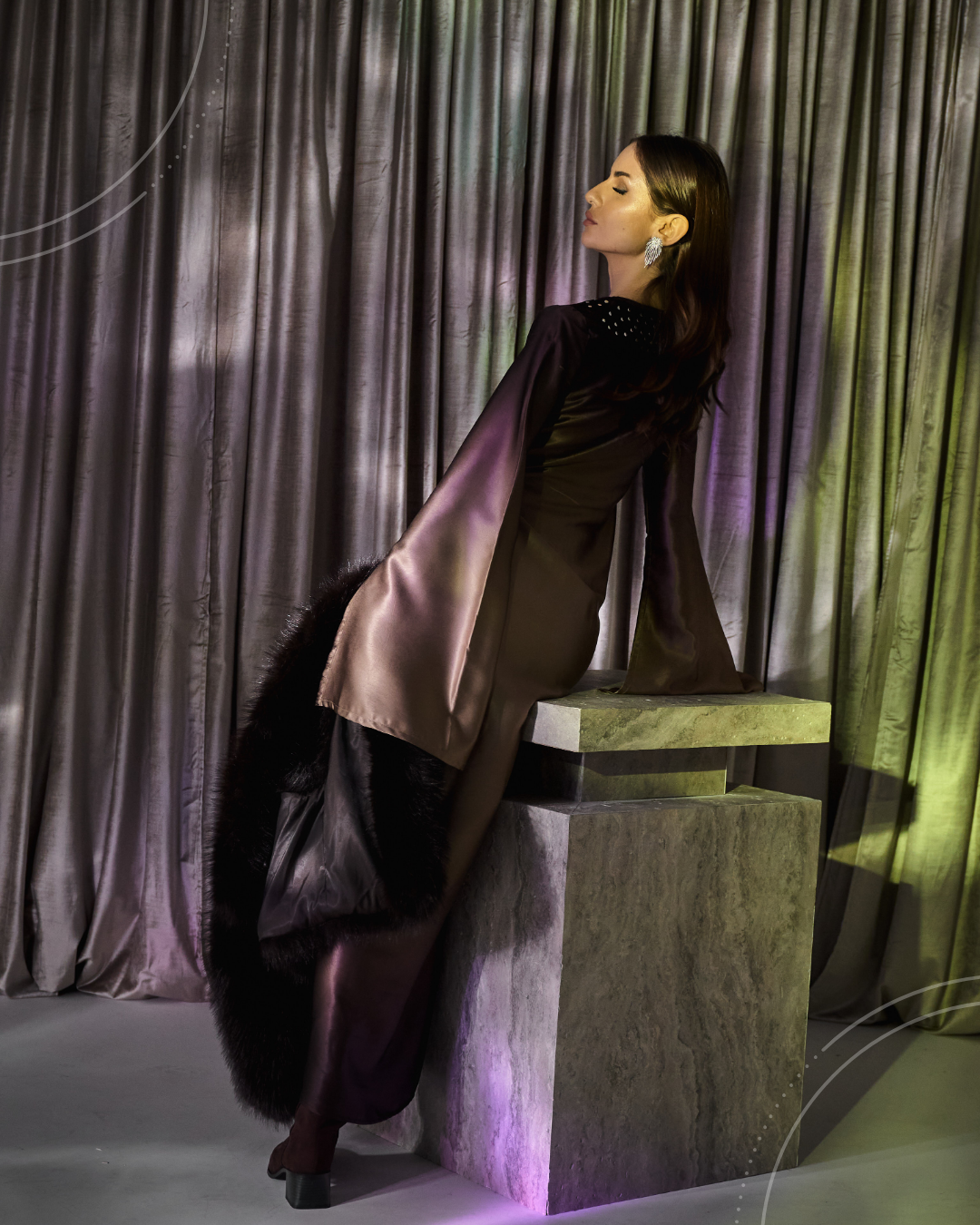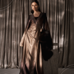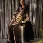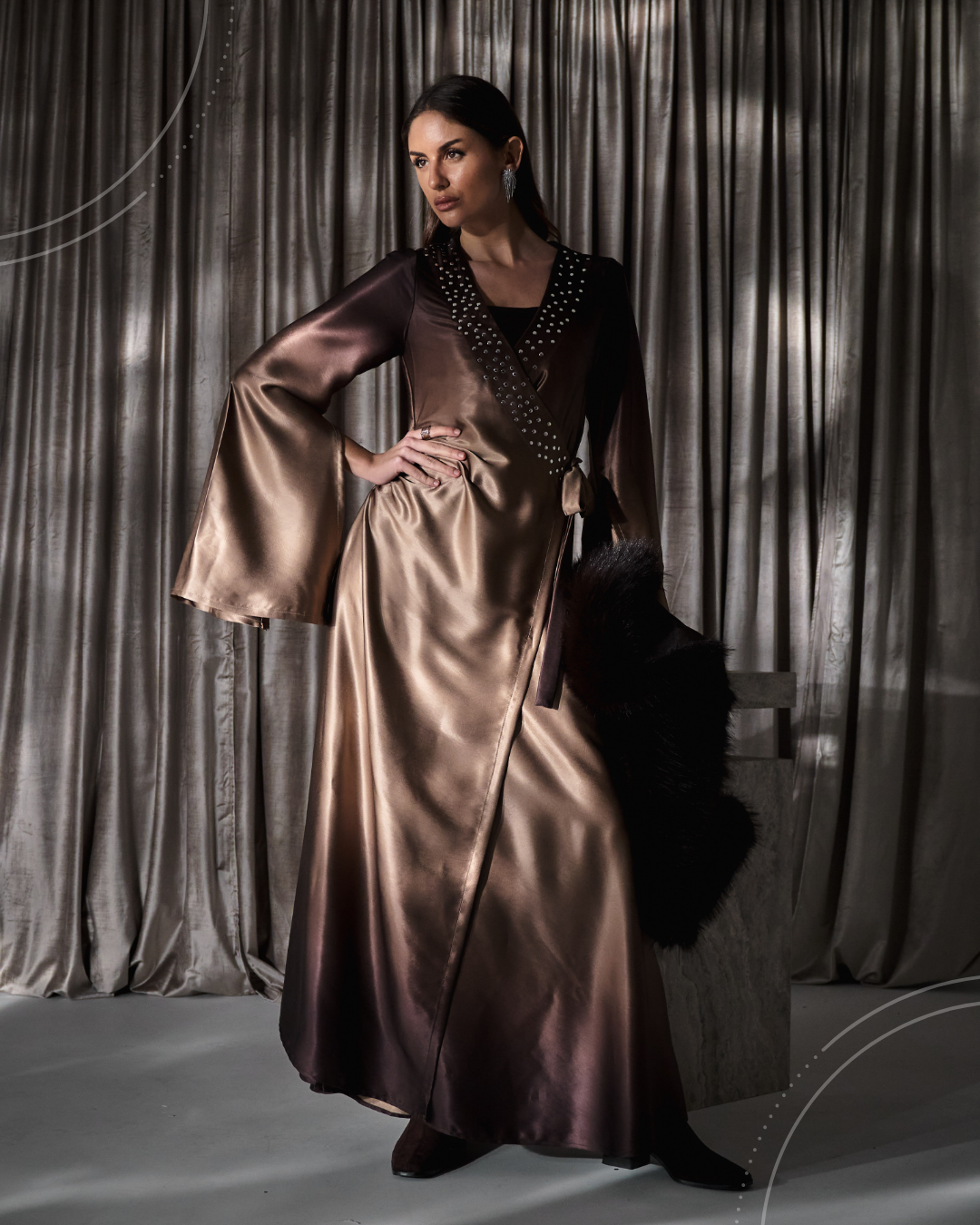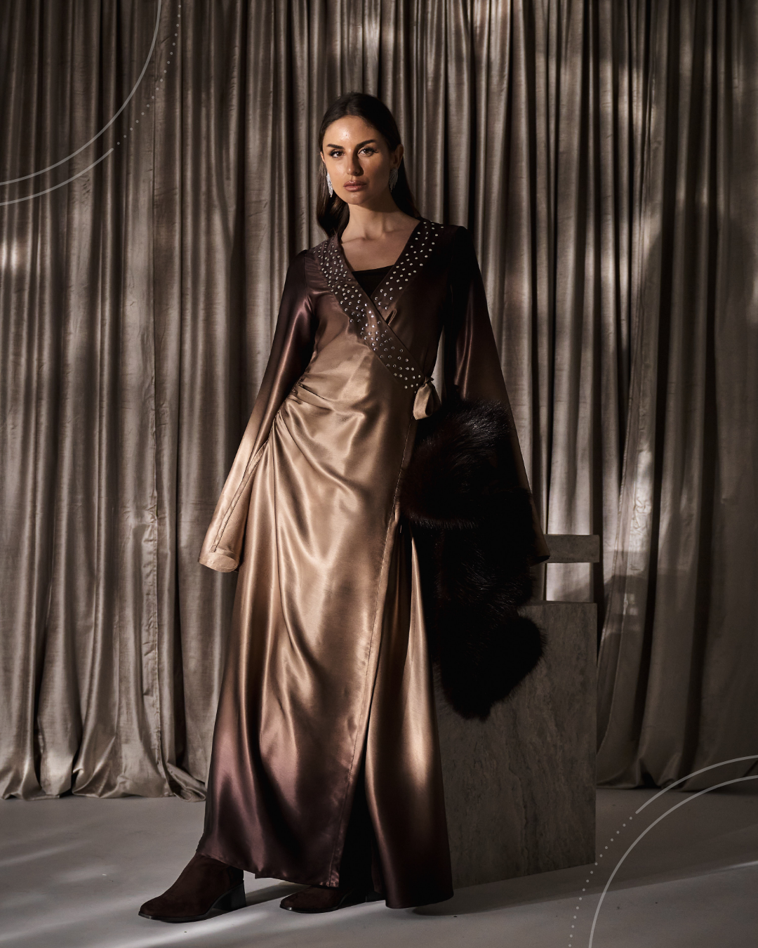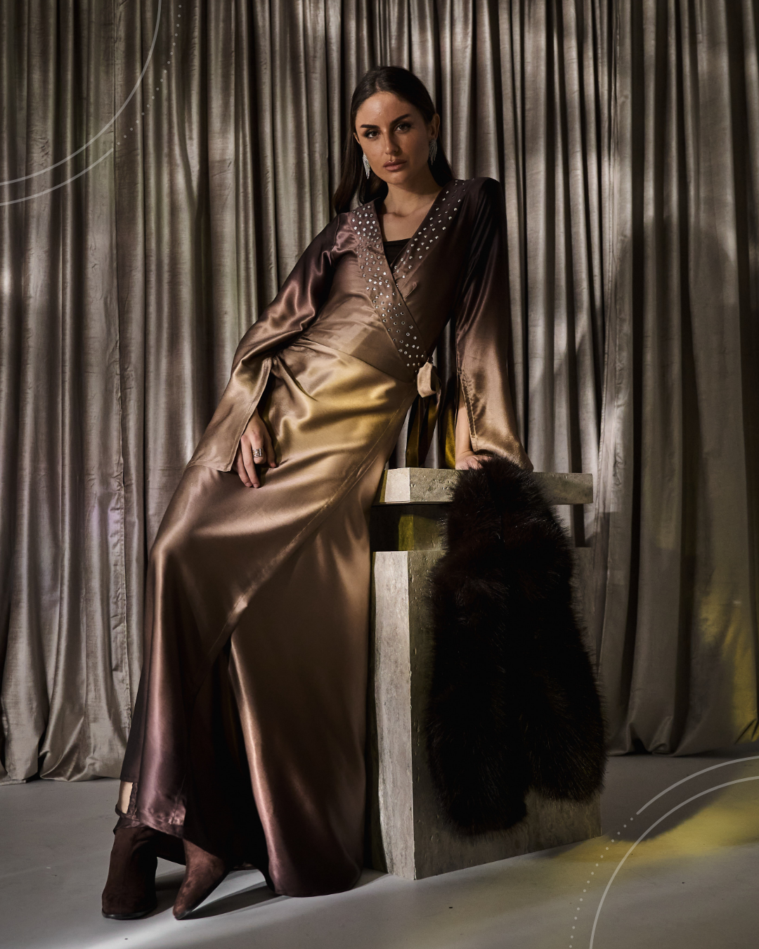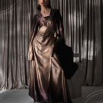 A silk dress featuring a brown-to-beige color gradient,